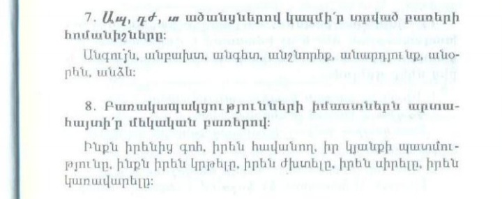 Ա շարքի բոլոր բառերը ունեն ա հոդակապ, բացի ծաղկեփունջ բառից և բոլոր բառերն էլ բարդ բառեր են։